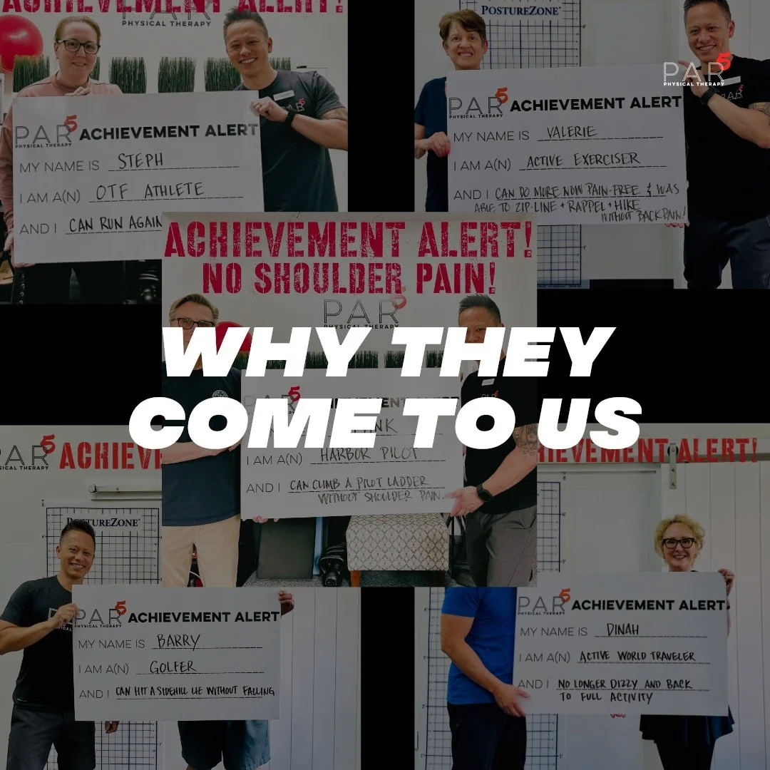 At PAR5 Physical Therapy, it’s not just about exercise and ice packs, it’s about life transformation. We don’t spend time doing unsupervised exercise, we specialize in improving movement. With one-on-one manual skilled care, we work with you to achieve your goals so you can get back to doing the things you love.
